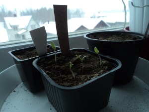 Nu har de första spirande skotten från en av mina groningstester börjat sticka upp med sina små gröna blad!