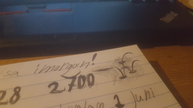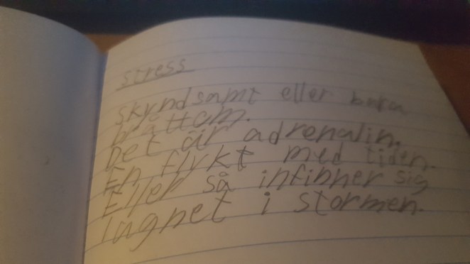 ”I alla fall; jag experimenterar väldigt med orden, men vet inte riktigt vad jag skriver just nu. Jag skriver väldigt mycket efter devisen ”Ju mer du vandrar, desto mer uppenbarar sig vägen”. Jag undrar lite smått dock var den här vägen tar mig. Det har varit mycket fjäll, träsk och tätbevuxna skogar. Det jag saknar är lite mer bussar och städer och människor. Och hållplatser i livet som jag kan gå av på…”
